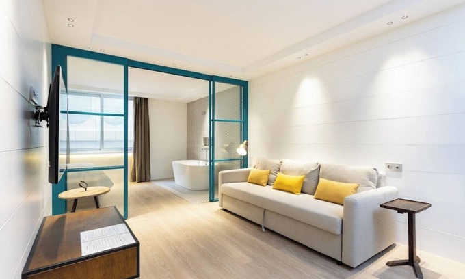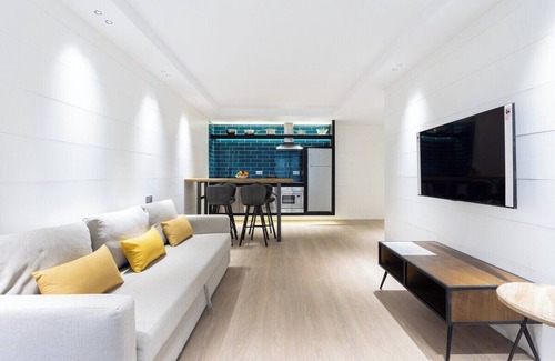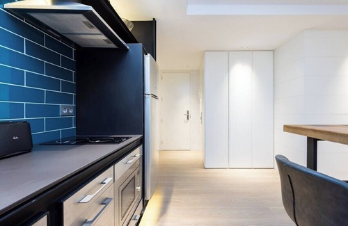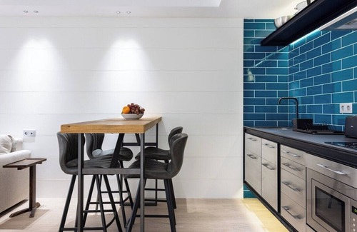 This beautiful design apartment is perfect for couples and business trips, as it has capacity for 2 people, one bedroom with en suite bathroom and a shower, bathtub next to the bed, equipped kitchen integrated in the living-dining room, Internet Wifi and elevator. Located in an exceptional area, very close walking to the main points of interest of the capital and with a magnificent connection with buses and streetcar to move without using the car.