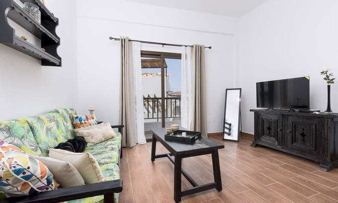 This cozy accommodation is perfect for a couple's getaway or solo travelers looking to unwind by the sea. With capacity for two people, it offers a bedroom with a double bed, storage space for clothes and a relaxing atmosphere that invites you to rest. It has a full bathroom with shower and an open concept living area with fully equipped kitchenette, a living room with a comfortable sofa ideal for relaxing, Smart TV 50” with some international channels in German and English and direct access to a balcony where you can enjoy the sea breeze and sunsets of Tarajalejo. For added comfort, it has high speed WiFi and fan.