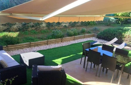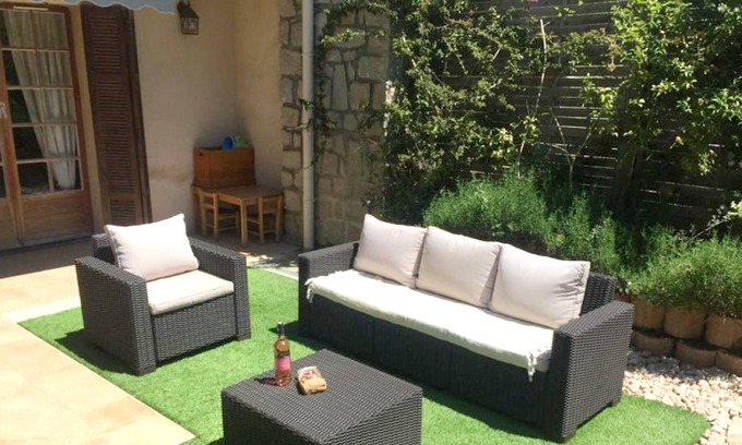 The kitchen is well-equipped for cooking up your favorite meals. Enjoy your feast around the dining table which seats 4 or outside, on the terrace or in the garden.