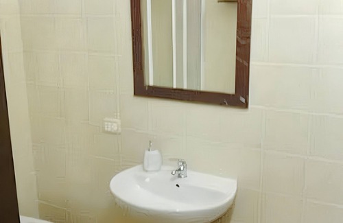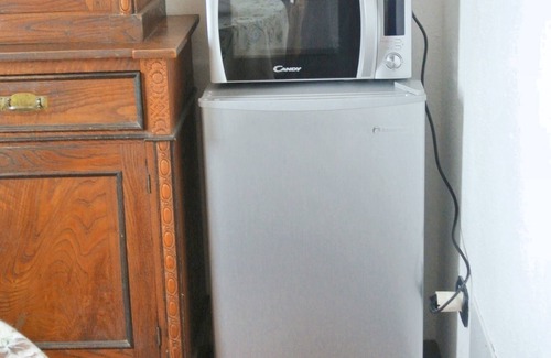 The apartment offers open and welcoming common areas, ideal for gathering and relaxation. The living room features a comfortable sofa and a desk for work or creative moments. The kitchen is equipped with all necessary modern appliances, including a microwave and refrigerator. The spacious dining table is perfect for bringing the family together for hearty meals.