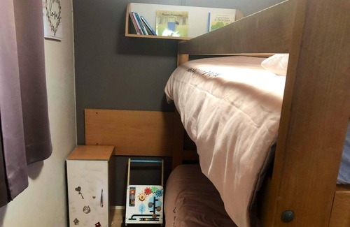 The bungalow has 2 comfortable bedrooms, 1 including a double bed and 1 including a bunk bed. The bathroom is fitted with a shower. A separate toilet is available
