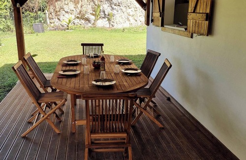 The house is easily accessible by car, with parking available on site. From Pointe-à-Pitre International Airport, it is about a 15-minute drive. For those who prefer public transport, there is a nearby bus station with regular connections to the island's main towns.
