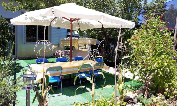 The kitchen is well-equipped for cooking up your favorite meals. Enjoy your feast around the dining table which seats 9 or outside, on the terrace enjoying views of the sea and the garden.