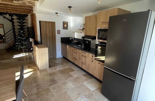 This house is surrounded by a lovely enclosed garden, ideal for relaxing moments outdoors. You can enjoy your meals on the furnished terrace or unwind on a sun lounger while taking in the serene views. The barbecue is at your disposal for friendly evenings with family or friends.