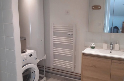 The common areas of this house are designed to offer maximum comfort. The modern kitchen is fully equipped with an oven, microwave, dishwasher, and coffee maker. The living room features a flat-screen TV and provides Internet access to stay connected. The kitchen table offers a generous space for family or friends' meals.