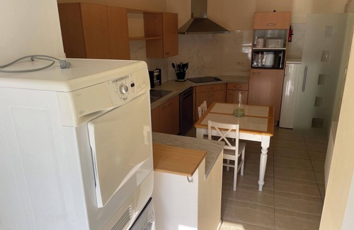 The studio exudes comfort with its open layout. It includes a cozy bedroom with a double bed and a living area with a sofa and a flat-screen TV, ideal for unwinding after a day of exploration. The kitchen is fully equipped with modern appliances, including a dishwasher, microwave, and coffee maker, allowing you to easily prepare your meals. The bathroom features both a shower and toilet.