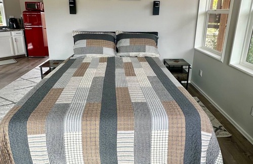 This fully outfitted octagonal 485’ guest house sits on a 23-acre homestead at the foot of Green Mountain w/view of the Cascade Mountain range. The Mtn Loop is a year round recreation area. Located across the Mountain Loop Hiwy is "Old Robe" Canyon Gorge a popular hike to Monte Cristo RR Tunnels & Whitewater Kayaking Robe Gorge south fork Stillaguamish River. (Note: Robe Canyon is the “Must Do” river for hard-core Northwest class five paddlers). Incredible kitchen w/2 burner propane countertop stove, full fridge, microwave, drip coffee maker, electric tea kettle, Ninja air fryer. 3-piece bathroom, tankless water heater, towels & Linens, Queen Bed, Sofa bed, T-Mobil booster, Starlink High Speed Wifi internet, Smart TV, Bose Bluetooth speaker, safe. Rooftop observation deck for star gazing, cocktails, sunrise yoga w/amazing mtn views. Free Parking on premises. NO Smoking/No vaping allowed anywhere on homesteaders grounds. Keyless, independent entry. No Pets allowed.