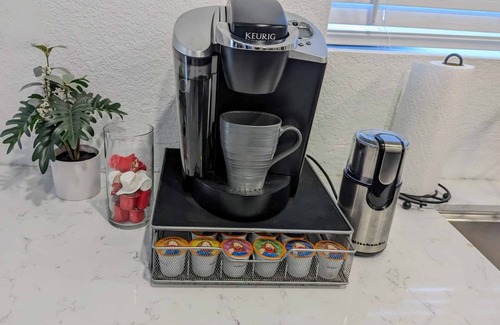 **We offer our guests a welcoming "starter pack" that includes K-cups, toilet paper, paper towels, and a selection of snacks. This thoughtful provision is designed to assist guests during the initial days of their stay, as we don't provide ongoing supplies.