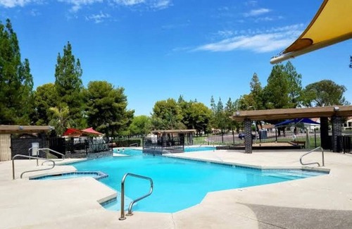 Yes, this Mesa house has a swimming pool. Check the Facility Overview section for details about the pool and other available facilities.