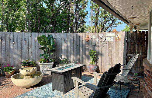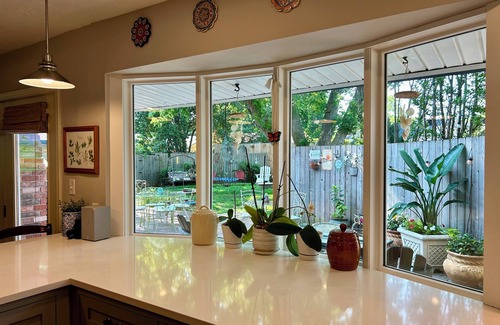 Our cozy home is nestled in a small and well established Norman neighborhood. It’s quiet with a church and fire dept across the street with all the conveniences within minutes in any direction. We live in our home so you’ll notice some personal touches throughout. We love that our beautiful, fully stocked kitchen is open to a comfy living room, and has large windows adding a lot of natural light, and a great view of our inviting patio and back yard. The master bedroom with a queen bed is downstairs and has an attached full bath and clothes rack. There’s a quaint half bath downstairs, as well, and a utility room with a W&D for your use. The other three bedrooms and full bath are upstairs with queen beds and TV’s. We offer a pack and play located in the middle upstairs bedroom closet for your little one, if needed, and for extra sleep needs a queen air mattress is available located downstairs in a linen closet. Enjoy your morning coffee on the patio or front porch rocking chairs, and relax in the evenings in our wonderful relaxing swim spa (please read instructions before use). Our home isn’t fancy, but it’s practical, clean, and comfortable, and our hope is that you’ll feel right at home and enjoy your stay!