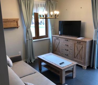 Providing a terrace, Homole Apartament LUX features accommodations in Szlachtowa. This property offers access to a balcony, free private parking, and free Wifi. Niedzica Castle is 15 miles from the apartment and Treetop Walk is 25 miles away. The air-conditioned apartment consists of 1 bedroom, a living room, a fully equipped kitchen with a dishwasher and a coffee machine, and 1 bathroom with a walk-in shower and a hair dryer. Towels and bed linen are provided in the apartment. The property has an outdoor dining area. Guests can make the most of the warm weather with the property's barbecue facilities. For guests with children, the apartment provides a children's playground. Guests at Homole Apartament LUX can enjoy skiing nearby, or make the most of the garden. Bania Thermal Baths is 28 miles from the accommodation.