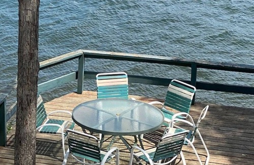 But the real highlight of our property is the martini deck that overlooks the water's edge, providing stunning views of the main channel. Imagine sipping on a cocktail while watching the sunset over the lake - pure bliss!