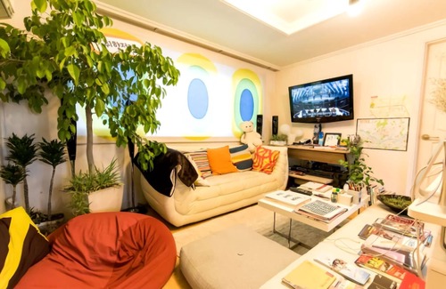 Cosy 3 rooms with nature-inspired design. This colourful house featuring 3 rooms and 2 bathrooms. Ideal for family of 7~8pax. Our breakfast can be pre-ordered. 2min walk to Hongdae exit 7. LGBT Friendly.