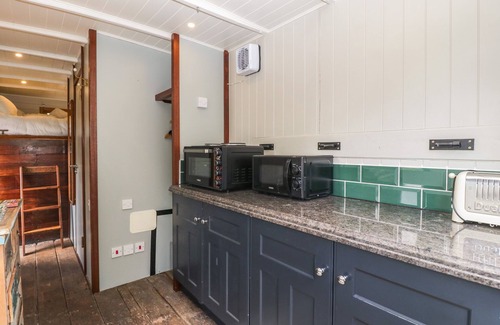 The living areas in this converted horsebox consist of an open-plan living space with kitchen equipped with electric oven and hob, microwave and fridge, a dining area for two and a sitting area. There is one mezzanine double bedroom above the driver's cab serviced by a shower room. Outside there is off-road parking for one car and a private sitting area with furniture with access to the shared grounds and outdoor swimming pool. Within 0.2 miles there is a shop and 1.2 miles a pub. Highchair and travel cot available. One well-behaved dog welcome, but sorry, no smoking. WiFi, fuel, power, bed linen and towels are all included in the price. Explore Herefordshire at Horsebox 1. Note: There is a lake and a pool at this property, please supervise children at all times. Note: There are steps up to the horsebox and up to the mezzanine bedroom. Note: The outdoor swimming pool is 10m x 5m and depth is 0.8m to 1.3m and is available from 7:30am to 8pm, is shared with other properties and is subject to seasonal availability.