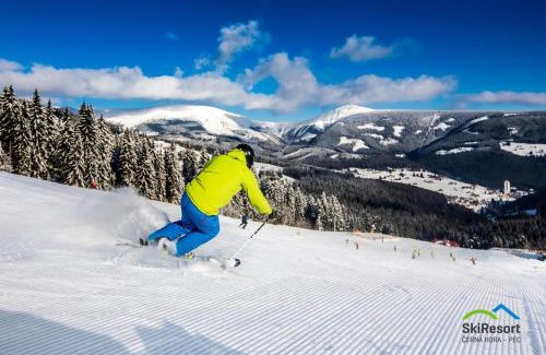 Horský hotel Žižkova bouda is located on a hillside above Pec pod Sněžkou, directly on a ski slope of the Krkonoše National Park. It comes with a restaurant serving characteristic Czech cuisine. A breakfast buffet is served every day and Wi-Fi is available in public areas. Some rooms feature a private bathroom while others come with shared-use bathroom facilities. A ski storage room is provided on site and there is also a games room for the children’s entertainment. You can also play table tennis or table football at the property. A garden where you can sunbathe is a further feature of Horský hotel Žižkova. The Velká Úpa Cable Car is 1.9 mi away and the village center can be reached within a 10-minute walk. Public parking is possible nearby.