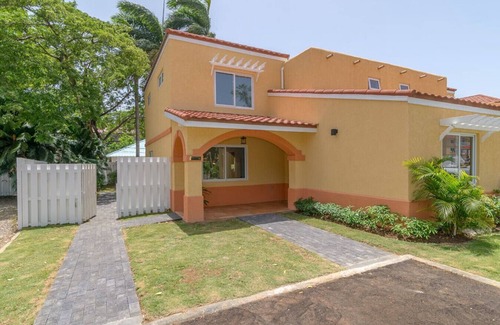 The cutely furnished home has 3 large air conditioned bedrooms with en-suite bathrooms, large closets and high quality linens. There`s a garden with patio, air conditioned living, dining room and fully equipped kitchen.