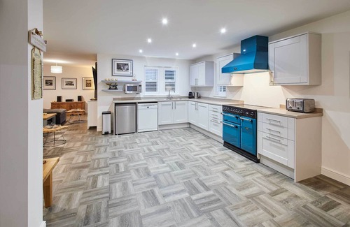 The beautiful kitchen that has all the essentials you'll need to cook delicious meals during your stay! You can enjoy your family meals at the dining table which is located at the top end of this open-plan area.
