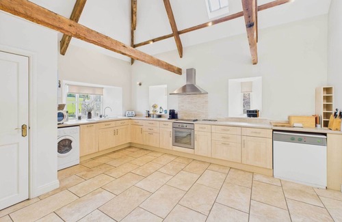 Blue Barn is spacious and bright with vaulted ceilings, exposed beams and oak furniture throughout.