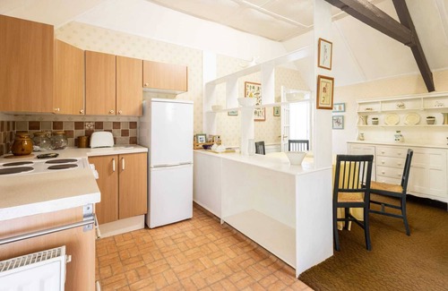 The kitchen is equipped with a fridge-freezer, kettle, microwave, oven and toaster so you’ll be able to prepare meals easily during your stay. There is also the added bonus of a washing machine. Also sharing this space is a dining area which includes a dining table and matching dining chairs.