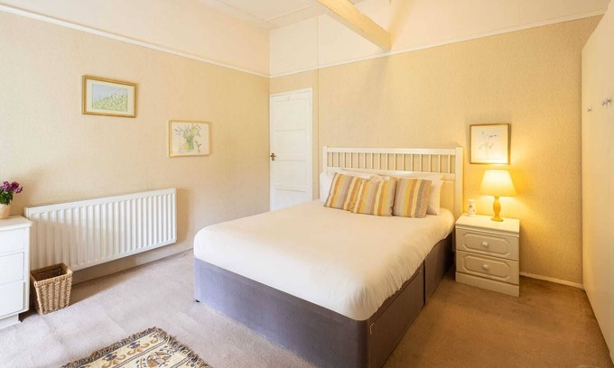 With light cream walls, the bedroom is ultra cosy and snug. A comfortable double bed and ample storage space complete the room.