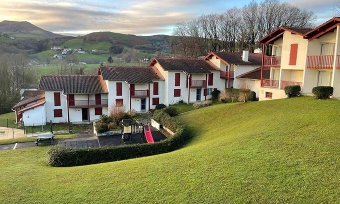 HOSTA Piscine Vue Montagnes offers accommodations in Souraïde, 13 miles from Saint Jean de Luz Train Station and 14 miles from Saint Jean Baptiste Church. This 2-star apartment offers pool with a view. There's a sun terrace and guests can use free Wifi and free private parking. Providing a balcony with mountain views, this apartment also offers a flat-screen TV, a well-equipped kitchen with a dishwasher, a microwave, and a toaster, as well as 1 bathroom with a shower. The property has an outdoor dining area. A children's playground is also available at the apartment, while guests can also relax in the garden. Biarritz La Négresse Train Station is 15 miles from HOSTA Piscine Vue Montagnes, while Hendaye Train Station is 22 miles away. Biarritz Airport is 11 miles from the property.