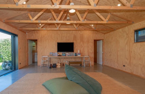 At the back of the property and separate from the house you will find the fabulous rumpus room which the kids and teenagers will love! This has a queen bunk and a set of single bunks. There is a Chromecast TV and bean bags to chill out in. There is also a large bathroom and a washing machine.