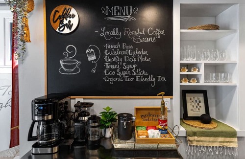 ➤ Coffee & Tea Bar – Pittsburgh's own Commonplace Roasters whole bean coffee, burr grinder, French press, Two Leaves & a Bud premium tea, organic sugar, Torani syrups, and real half & half