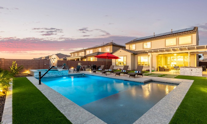 Welcome to 164TH Surprise, a stunning 5-bedroom home nestled in the heart of Surprise, Arizona, where luxury meets comfort in a serene desert oasis. This spacious 2,821 square foot property is perfect for families or groups, accommodating up to 12 guests, making it an ideal getaway for those seeking relaxation and adventure.