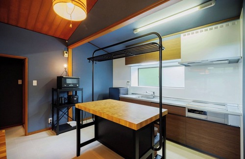 A system kitchen with an induction stove 3 burners We have a BALMUDA The Range oven range a rice cooker and other cooking utensils as well as tableware for the number of guests so you can use them for cooking during your stay Ingredien