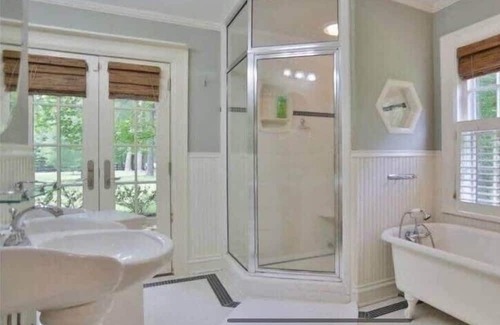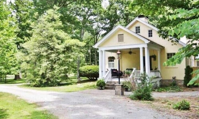 Indulge in relaxation with your own private hot tub, adding a touch of luxury to this charming Airbnb retreat. A calm and homey spot - this home is everything you'd want for that perfect vacation! Sip some complimentary coffee on the deck while taking in the amazing milieu. The home has a charming blend of vintage-classic furnishing, unique character, some modern appliances, and overwhelming indoor and wide green outdoor space! It presents a clean and open space all throughout!