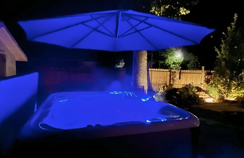 Enjoy the therapeutic hot tub, fire pit, or cook something tasty in the well-stocked kitchen including specialty coffees, the grill or flat griddle. Want to eat out? The house is a mile from some of the best dining options in the state. The backyard outdoor space is exceptional, with rocking chairs, a fountain, herb garden space and bird feeders that attract humming birds and all their friends.