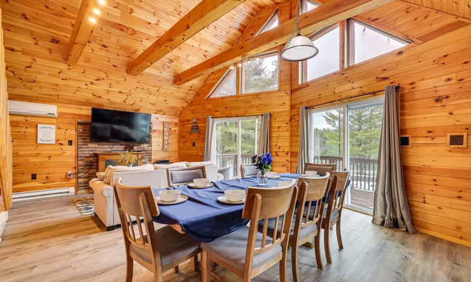 Outdoor adventures await when you gather loved ones and retreat to this inviting 6-bedroom, 3.5-bath cabin in White Haven, PA! Visit the nearby community lake and beach in the summer, hike through a state park of your choice, or take a short drive to the iconic Pocono Raceway. When you’re ready to unwind, return to the spacious vacation rental and decompress in the private hot tub while the kids roast s’mores around the fire pit.