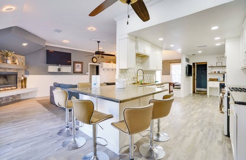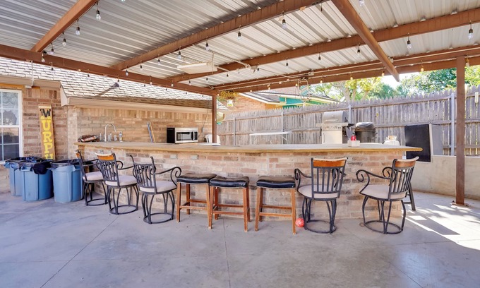 Fun-filled days under the Texas sun are best spent at this Ransom Canyon vacation rental. Whether you want to get out on the lake, sip drinks in the shade at the outdoor bar, or shoot hoops on the patio, ‘Murphy Style Oasis’ is well-equipped to handle all your group’s needs. This spacious 6-bedroom, 3-bath home is ideal for exploring Lubbock, catching Red Raider games, or simply relaxing in the hot tub.