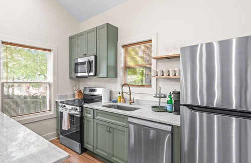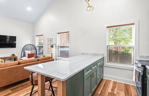 Stylish single-level mother-in-law cottage steps from the Beltline and Beacon. This pet-friendly retreat offers comfort and convenience with a private hot tub and a shaded umbrella and peaceful patio. Well-designed interior includes premium amenities like luxurious long-staple cotton sheets. Every detail thoughtfully considered in this walkable urban oasis. The perfect base for neighborhood exploration with your furry companions, and a serene sanctuary with designer touches throughout.