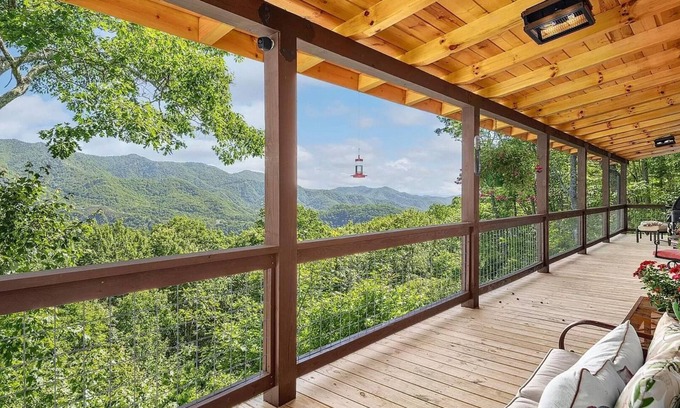 Hot tub, theater room w/100" tv, views, firepit, 3 king beds, porch perfection! is located in Cranberry Falls. Hot tub, theater room w/100" tv, views, firepit, 3 king beds, porch perfection! provides accommodation, featuring Wellness Facilities, Fireplace/Heating, Entertainment, among other amenities. This Cabin features Wellness Facilities, Fireplace/Heating, Entertainment, to make your stay a comfortable one.