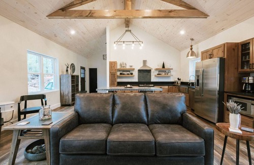 Honeysuckle Bridge Cabin is a newly built 3 bedroom/2 bunkroom, 3.5 bathroom, modern, yet rustic cabin, nestled in the heart of Red River Gorge, KY with a natural arch on site! Honeysuckle Bridge is a sandstone arch that spans 39 feet across and is located on this beautiful, approximately 5 acres of private property. This wonderful cabin offers private hiking/exploring opportunities that not many get to experience. Treat yourself, and your party of up to 12, to true luxury in Red River Gorge!