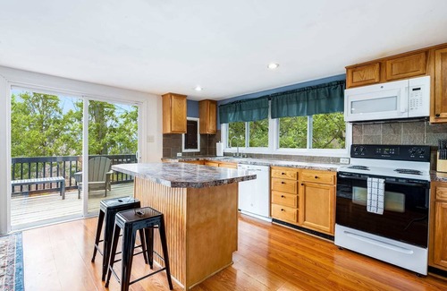 Whether you prefer to enjoy some peace and quiet cozied up in the cabin or if you’d rather admire the grand woods around you on the deck outside, Oakview Point will not disappoint. The cabin is tucked away in the woods -- with nearby access to plenty of amazing hiking trails.