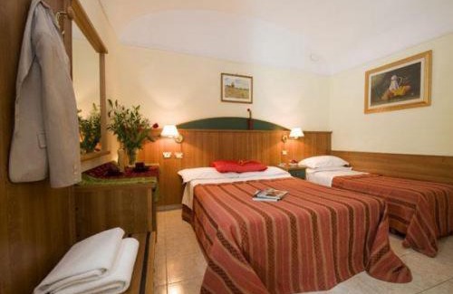 Hotel Altavilla is in the Esquilino district, just under a quarter of a mile from Roma Termini Train Station and a 5-minute walk from Piazza della Repubblica. The simple rooms all have satellite TV and a fridge. The staff is available 24 hours a day. The rooms have a private bathroom and a safe. Air conditioning is available upon request. Free Wi-Fi access is provided in the lobby and in the breakfast room, where a sweet Italian breakfast is served daily. Altavilla Hotel is a 15-minute walk from the Colosseum and the Roman Forum. The Spanish Steps and the Vatican City are just a few metro stops away.
