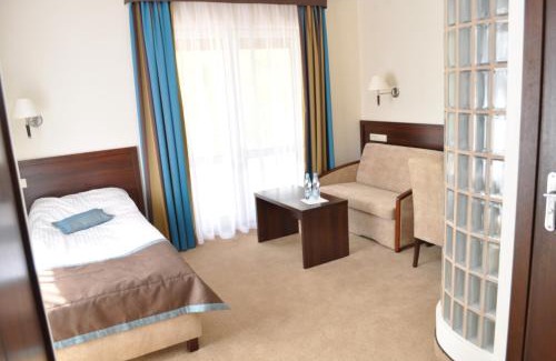 Offering spa and wellness facilities. Hotel Atena Wedding, Business & Spa is located in Ciechanów, in quiet surroundings. Free Wi-Fi access and private parking are available. The modern, classically decorated rooms here will provide you with a flat-screen TV with satellite channels. Featuring a hairdryer, private bathrooms also come with free toiletries and towels. Ironing facilities are provided at the front desk. There is a restaurant at Hotel Atena Wedding, Business & Spa which specializes in European cuisine and offers a corner for children. There is a hot tub, a steam bath and a sauna at an additional charge of 50 PLN per person and a massage can also be booked. The town center is about 1.7 mi away and the Train Station is about 1.6 mi from Hotel Atena Wedding, Business & Spa.