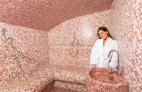 Recreational amenities at the hotel include a steam room and a fitness center.