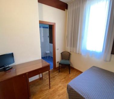 Set on the seafront in Rimini's Marina Centro area, Hotel Bellevue provides free WiFi access. Rooms have a classic design with wood floors and elegant furniture. All are air conditioned and soundproofed. They feature a flat-screen TV, mini-bar with only free bottle of water and a private bathroom with hairdryer and toiletries. Most rooms have a balcony overlooking the Adriatic Sea. Breakfast is buffet style at the Bellevue Hotel. Drinks are available from the bar. A dry cleaning and car rental service is also available. The surrounding area is full of shops, restaurants and discos. Rimini Train Station is 5 minutes away by bus.