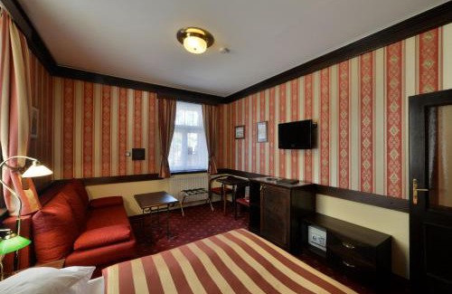 A wellness area with a hot tub, a sauna and an indoor swimming pool is provided at Hotel Berg in Staré Splavy, 656 feet from the shore of the Máchovo Jezero Lake. The hotel’s own restaurant serves international cuisine and features a terrace. All rooms come with classic furniture, a seating area and a flat-screen satellite TV. A bathroom with a shower, a hairdryer and free toiletries is also provided in each room. Free Wi-Fi can be used in all rooms and rooms for disabled guests are available. You can work out in Berg’s fitness center and read books in the on-site library. Table tennis and billiards facilities are provided on site and children can romp around on the hotel’s playground. After a long day, you can request a relaxing massage at Hotel Berg. A breakfast is served daily and can be consumed in the privacy of your own room. Swimming can be enjoyed in the lake and a miniature golf course can be found 656 feet away. Fishing is possible in a small lake located 1640 feet from the hotel. The Bezděz Castle is 8.1 mi from the property and the Gothic Houska Castle can be reached within 15 minutes by car. Free private parking is possible in front of the hotel and the closest bus and train station is 984 feet away.
