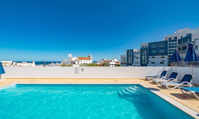 Hotel with a rooftop terrace, steps from Albufeira Old Town Square