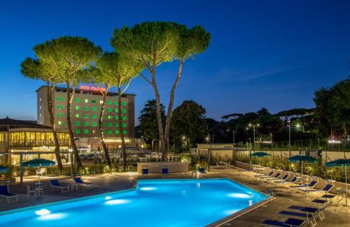 Cristoforo Colombo is set in Rome's EUR district, next to Euroma2 shopping center and close to Rome's GRA ring road. The hotel offers free WiFi throughout and parking and a free seasonal outdoor pool. The Colombo's rooms offer direct access to the parking and are air conditioned and bright. Each room has a flat-screen TV and a private bathroom. The restaurant serves local Roman, Italian and international dishes and a varied and an extensive continental buffet-style breakfast is available. The Cristoforo Colombo enjoys great transport links. There is a bus stop nearby providing connection to the line B of Rome's metro.