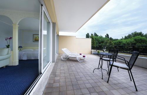 This 4-star hotel in Montegrotto Terme is set in a 45,000 square yard parkland, just 984 feet from the city's train station. It offers modern rooms, a wellness area, and free indoor and outdoor pools. Large balconies are a standard feature in all of Hotel Des Bains Terme's rooms. You will enjoy modern dècor, an LCD TV with satellite channels and free WiFi in each type of accommodations. The on-site restaurant specializes in modern international dishes as well as local cuisine from the Veneto area. The buffet breakfast includes homemade cakes, and sweet, savory and gluten-free foods. You can enjoy massages and thermal treatments in the wellness area. Towels are provided for the pool, which is furnished with sun loungers and sun umbrellas. A hot tub and hammam are also available on site. Staff can organize excursions to the Colli Euganei area, and a shuttle service to and from Venice Airport can also be arranged for a fee.
