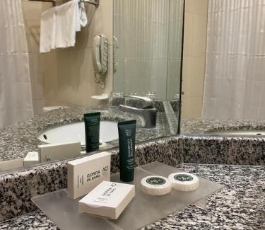 Food & DrinkMinibarBathroomPrivate bathroom, Hairdryer, Toilet paper, Bathtub or shower, Towels, Free toiletries, Bathtub, ToiletGeneralSafe, Heating, Air conditioning, Key card accessMedia & TechnologyTelephone, Cable channelsLiving AreaDeskBedroomLinensAccessibilityUpper floors accessible by elevatorRoom AmenitiesNon-feather pillow, Socket near the bed |
