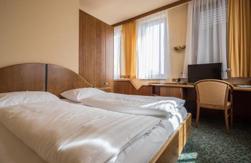 Located next to the Oberlaa Park in the southern part of Vienna, Hotel Eitljörg is only a 20-minute drive from the city center and the airport. It offers free WiFi and free parking. Rooms at the Eitljörg Hotel feature satellite TV, a work desk, a mini-bar, a safe, and a bathroom with a bath or shower and a hairdryer. The restaurant has a conservatory and serves Viennese and Czech cuisine. A beer garden is available in summer. A seminar room for up to 25 people is also available.
