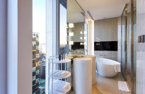 Hotel ENTRA Gangnam offers 92 accommodations with espresso makers and safes. Beds feature down comforters and premium bedding. A pillow menu is available. 42-inch LED televisions come with premium satellite channels. Bathrooms include bathrobes, bidets, complimentary toiletries, and hair dryers.