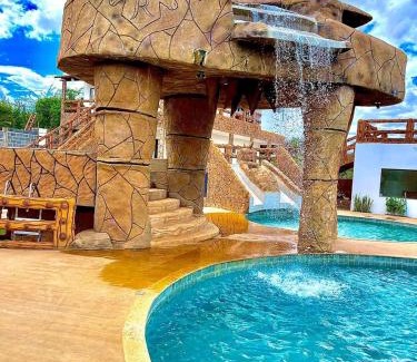 Hotel Fazenda Haras Paraíso do Atlântico has a garden, shared lounge, a restaurant and bar in Arrecife Grande. With free WiFi, this 5-star hotel offers room service and a 24-hour front desk. The hotel features an outdoor swimming pool, hot tub, nightclub and a kids' club. A buffet, American or vegetarian breakfast is available at the property. At the hotel guests are welcome to use a hot spring bath.
