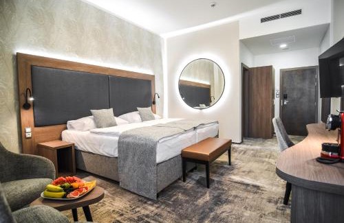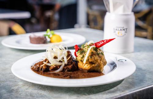 Featuring a wellness area with a rooftop swimming pool, a restaurant serving Czech and Moravian cuisine and a small brewery on site, Hotel Galant offers a 24-hour front desk and free WiFi. The rooms and suites are fitted with a satellite flat-screen TV and buffet breakfast is served in the mornings. The wellness center features a rooftop terrace with a pool, a hot tub and panoramic views. The entrance to the wellness center, massages and other services are available for a charge. Children aged 15 and under are allowed in the wellness center only until 2:00 p.m. Bicycle storage is offered at the property and bicycle rental can be arranged at the reception. A tour corner is at the guests' disposal. There is also a playground for children and a garden with a sundeck and terrace. In their leisure time, guests can visit the Mikulov Castle 984 feet from the hotel, the Kozí Castle 1969 feet away, the Turold Karst Cave 0.7 mi off or see the Saint Hill 1 mi and the Ditrichstein family tomb 328 feet from Galant Hotel. Further swimming options include a natural swimming pool in Mikulov 0.7 mi away and the Aqualand Moravia in Pasohlávky 9.3 mi off. Free monitored parking is available with limited capacity in the hotel's venue.